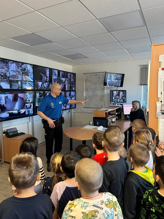 Dne 15. dubna 2024 přišly na návštěvu děti z MŠ Plešivec 1, Český Krumlov. Prohlédly si dispečink městské policie a kamerový systém, vyzkoušely si jaké je to být ve vězení (s paní učitelkou) a výbavu vozidla MP ČK.
